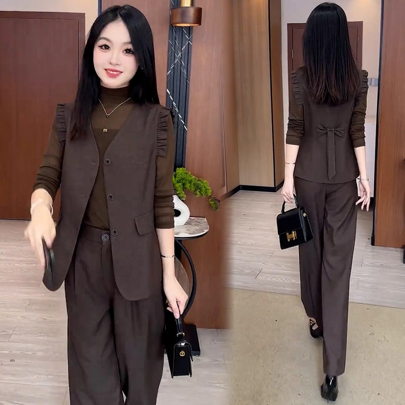 阔腿裤 早秋时尚 超火马甲打底衫 女2025新款 洋气显瘦三件套 气质套装