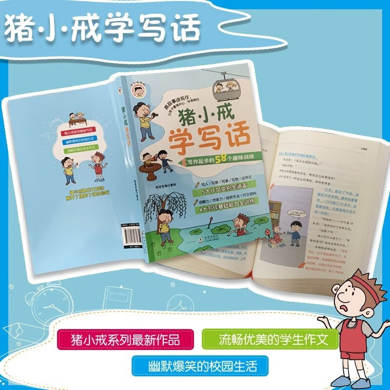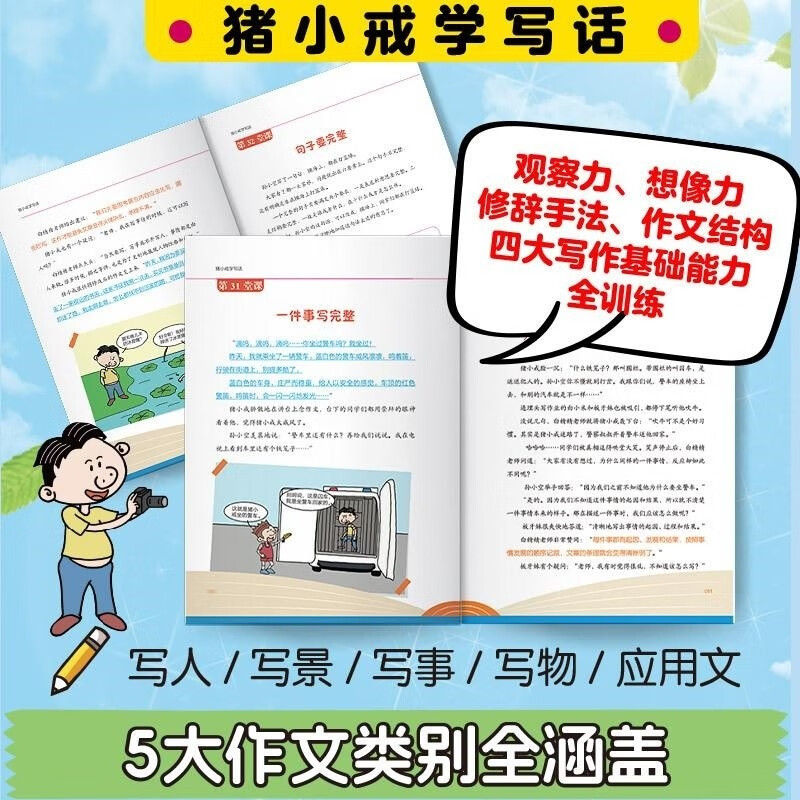 猪小戒学写话漫画书用漫画故事讲写作 12岁儿童观察力想象力思维逻辑锻炼作文阅读结构语法修辞写作技巧辅导专项趣味训练册Z
