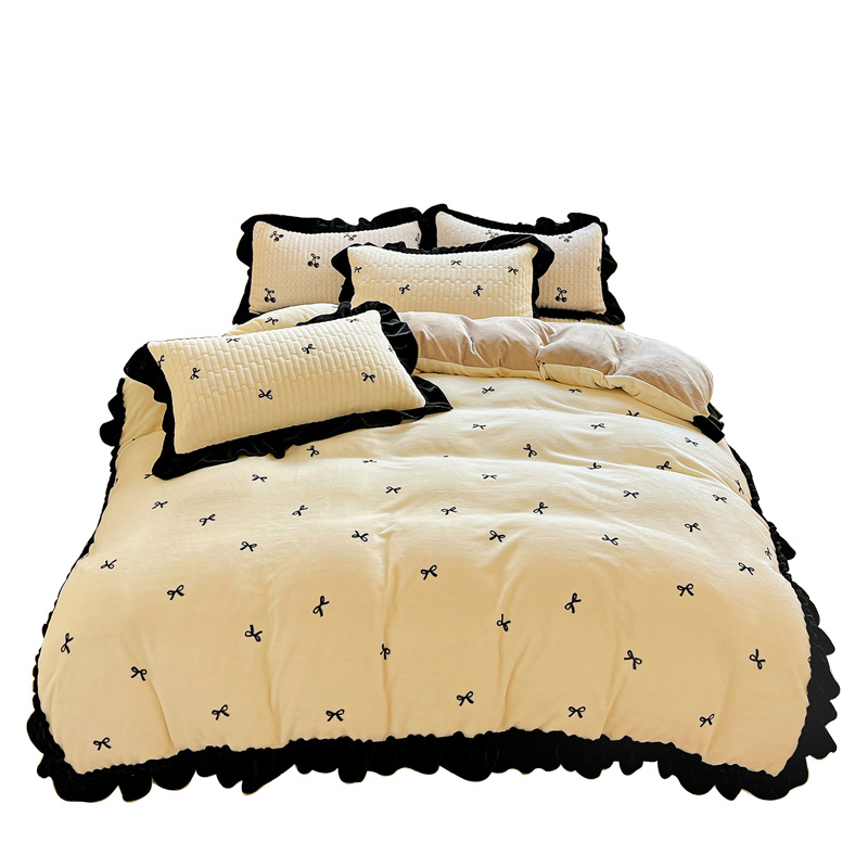 2025新款 公主风牛奶绒床盖四件套秋冬花边被套床盖加厚珊瑚绒 韩式