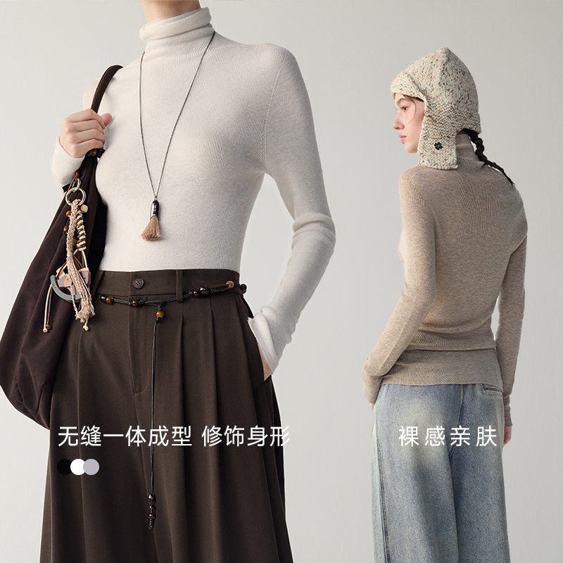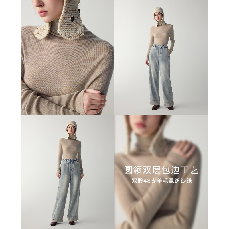 打底衣 48支无缝修身 MSLAN云朵羊毛衫 25秋冬软糯圆领高领针织衫