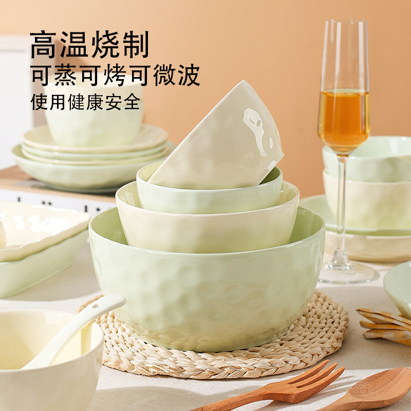 石纹简约高家用釉下彩碗盘两碗一盘奶油风混色 芭芭农场