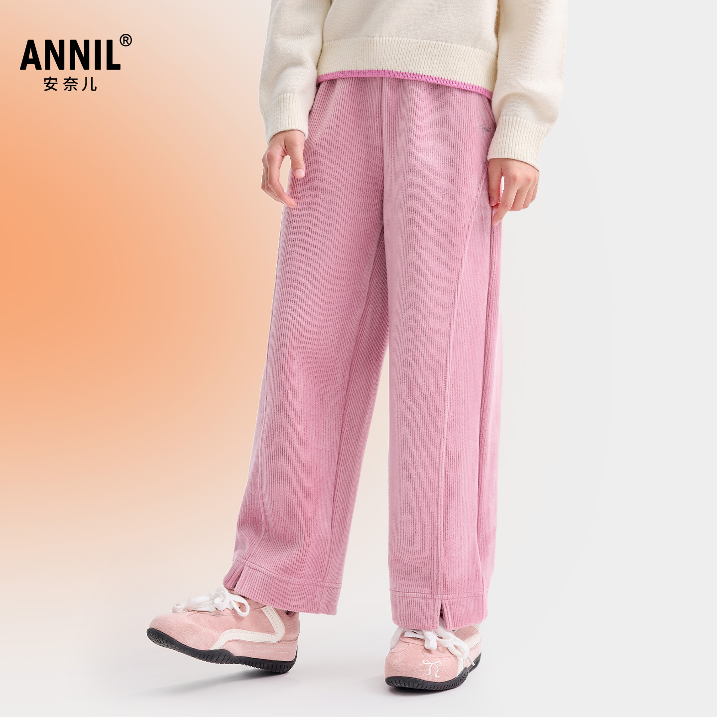 女童裤 宽松休闲长裤 子2025冬新款 防风时尚 保暖弹力厚款 安奈儿童装