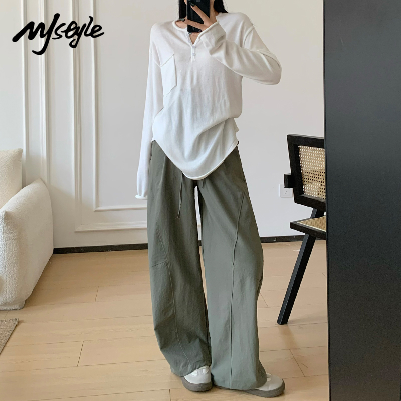 女2025秋季 裤 薄款 阔腿裤 高腰小个子直筒裤 STYLE简约仿棉工装