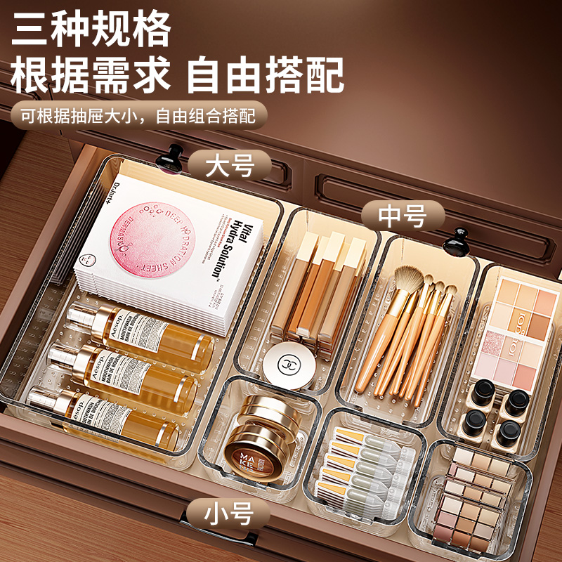 抽屉分隔收纳盒分格化妆品梳妆台面膜口红亚克力透明塑料整理盒子