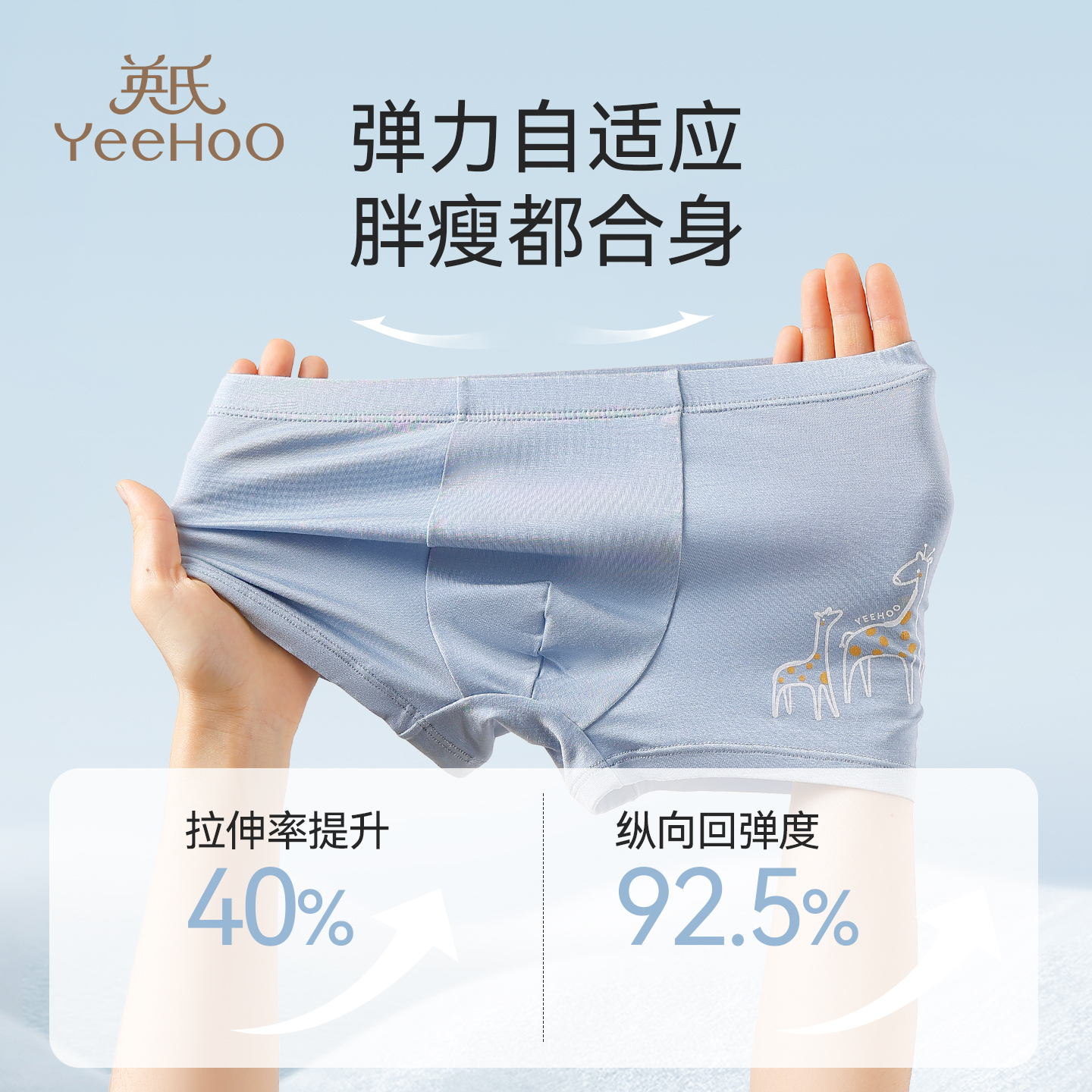 男生中腰平角四角裤 纯棉内裤 全棉时代男士 透气四角短裤 百补