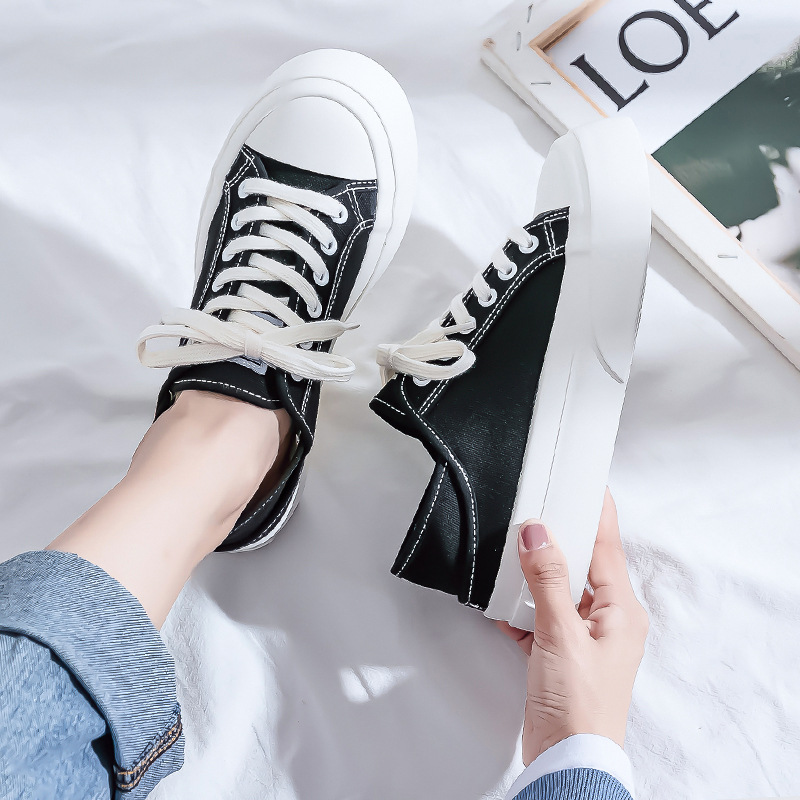 新款 低帮女鞋 百搭黑色韩版 潮流学生鞋 情侣 帆布潮牌休闲鞋 春秋季