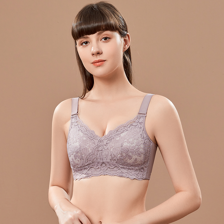 列维丝大胸显小内衣女收副乳无钢圈轻薄透气提拉蕾丝性感文胸罩