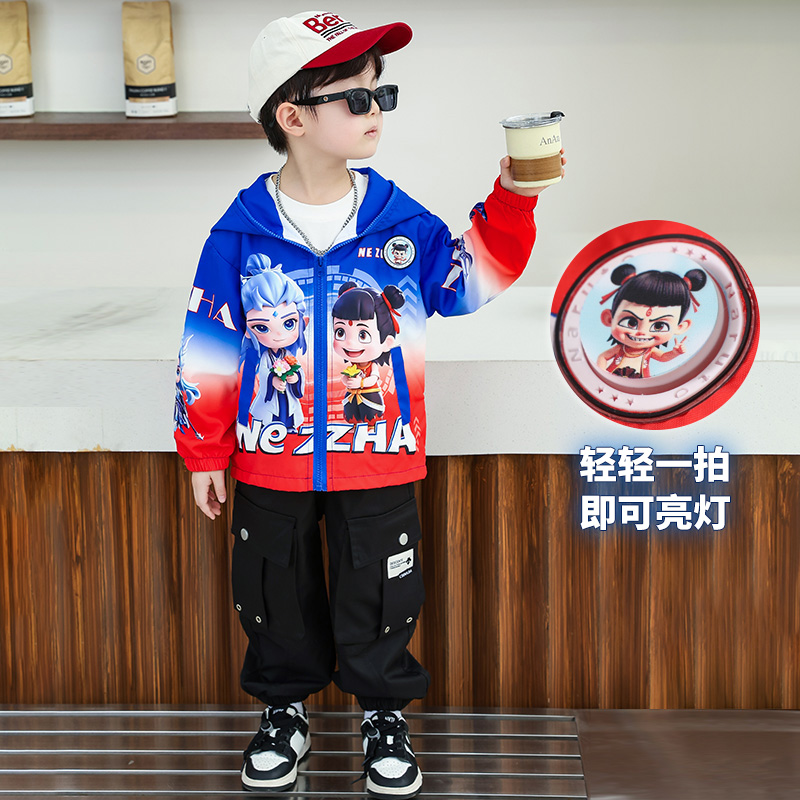 外套 儿童洋气冲锋衣连帽发光春装 儿童卡通带灯外套2025春秋季 新款