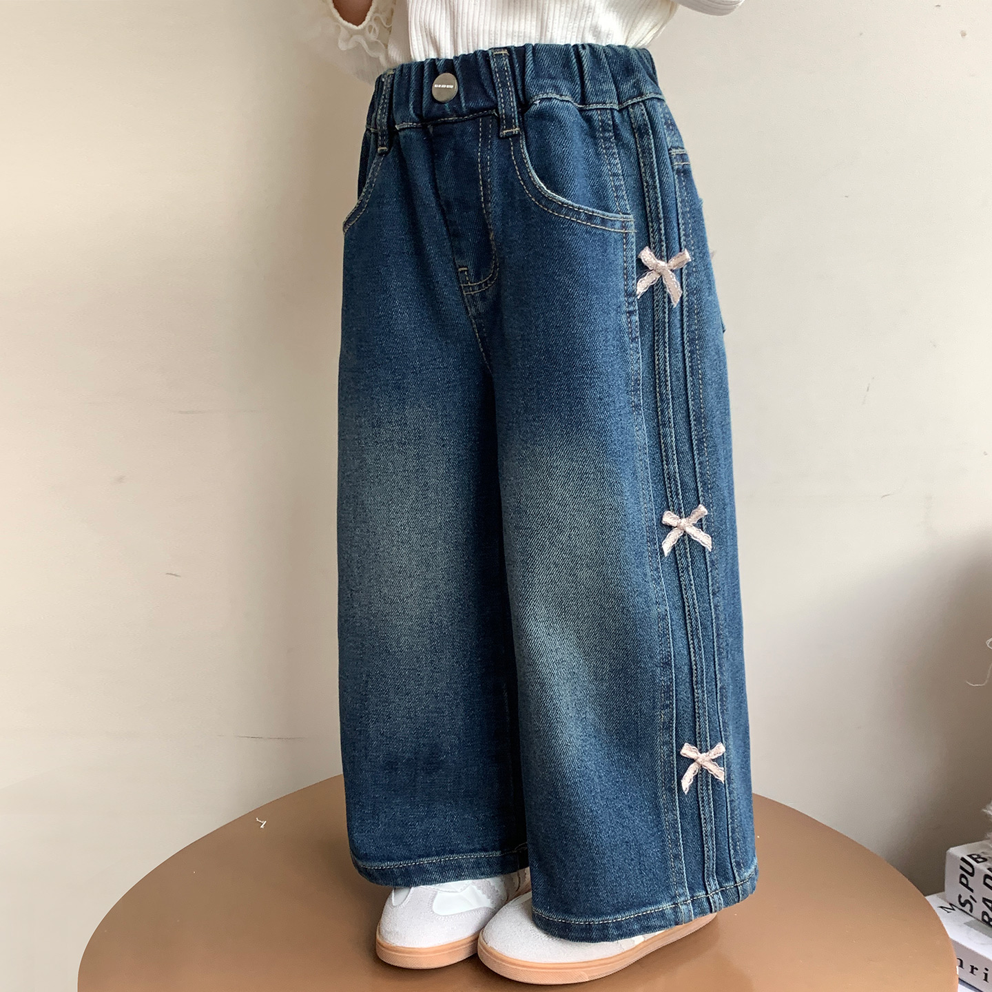 女童牛仔裤 休闲宽松长裤 2025秋新款 子中蓝色时尚 弹力裤 安奈儿童装