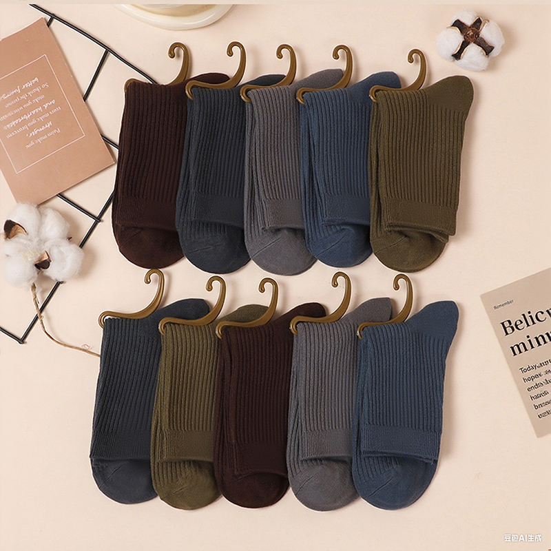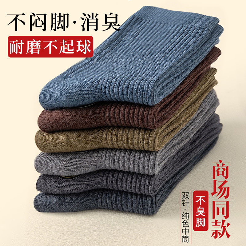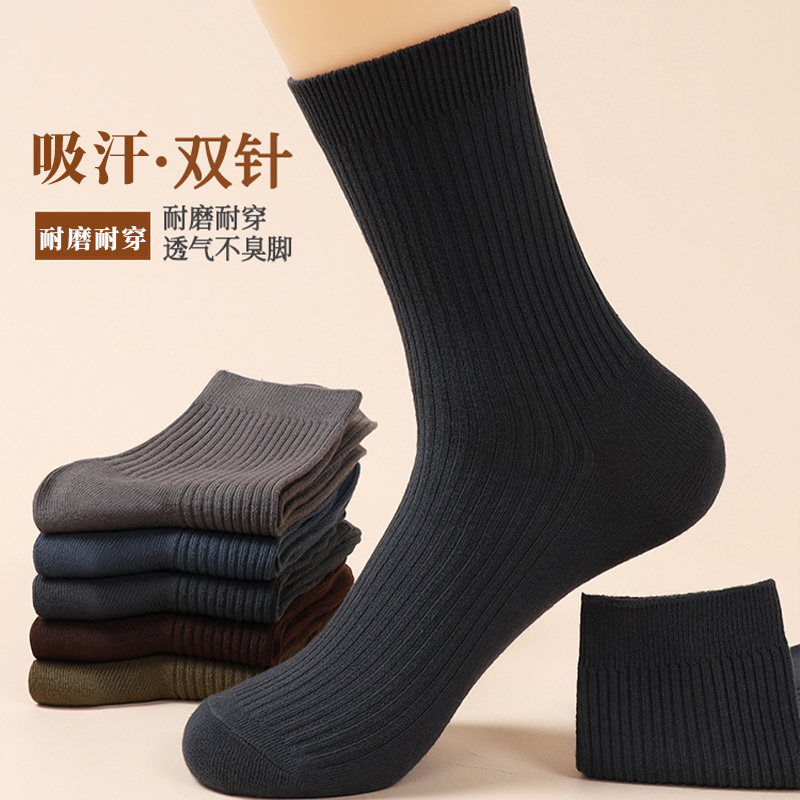 诸暨男士 加厚吸汗商务黑色长袜白色耐磨 袜子双针纯棉中筒袜春秋季