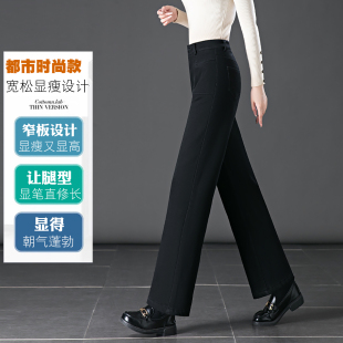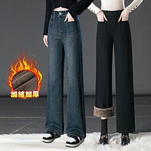 2025年八九分小个子高腰加绒弹力直筒裤 黑色烟管牛仔裤 女秋冬新款