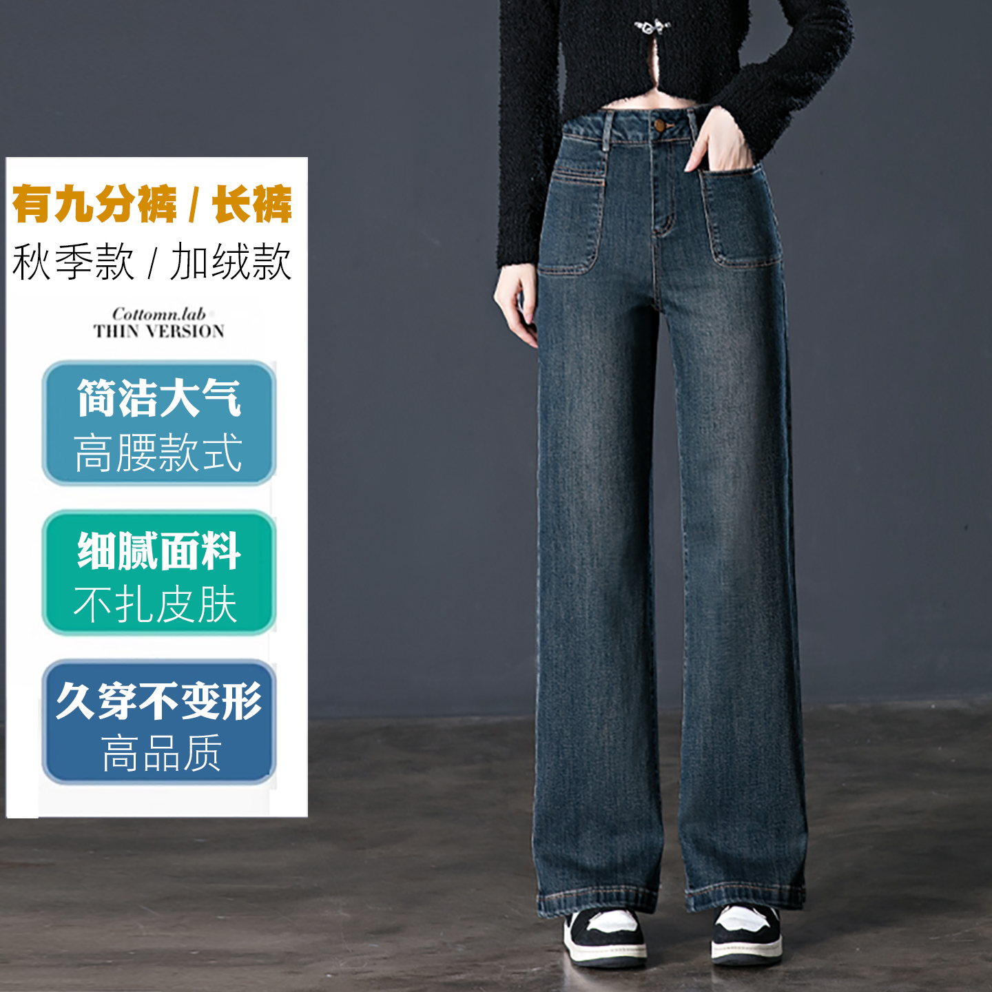 早秋弯刀裤 one 小个子直筒阔腿裤 女冬2025新款 more丹宁蓝牛仔裤
