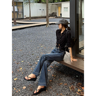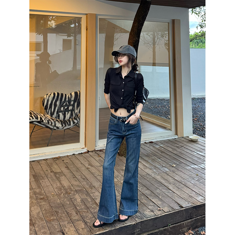 2025复古蓝微喇裤 显瘦裤 时尚 修身 子女 百搭牛仔裤 王家有鱼早秋新款