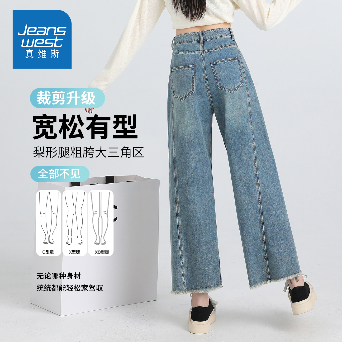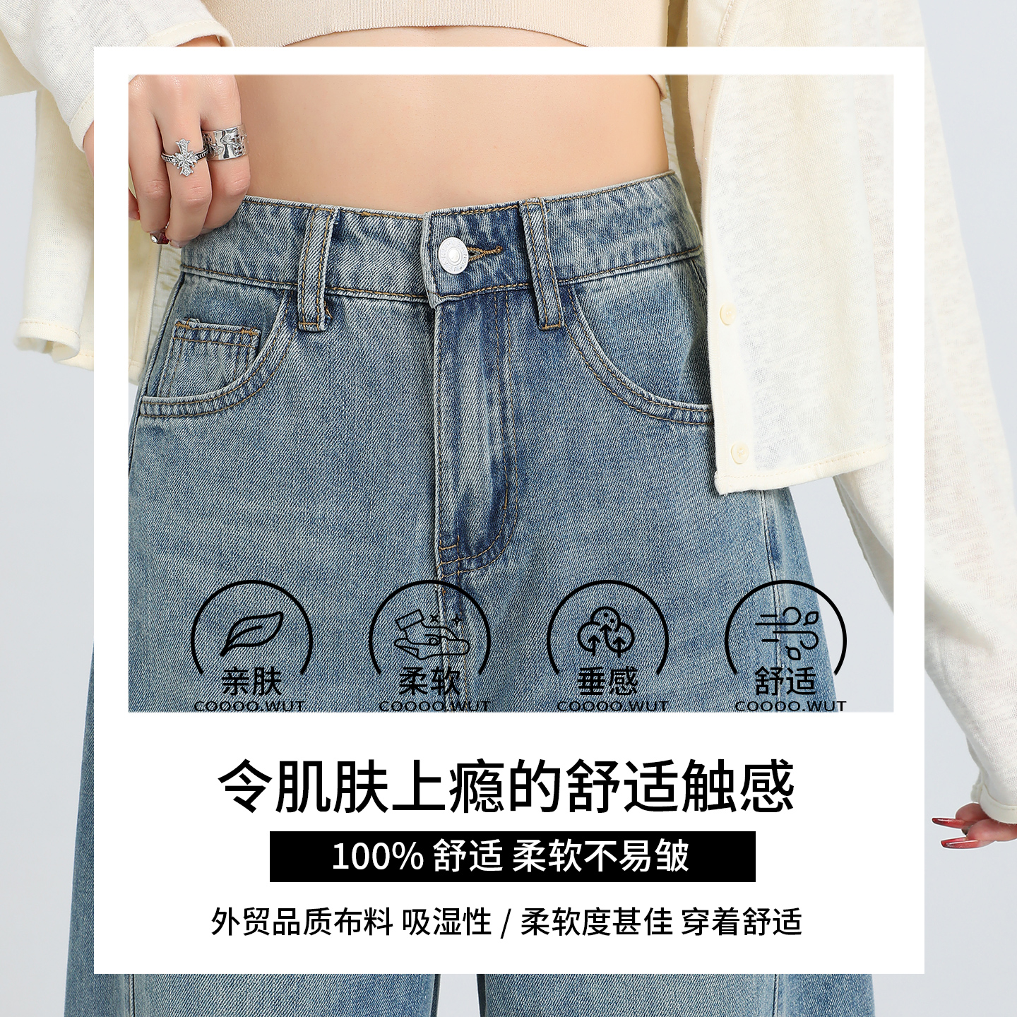 子秋冬 2025宽松垂感小个子直筒拖地裤 复古慵懒风阔腿牛仔裤 女秋季