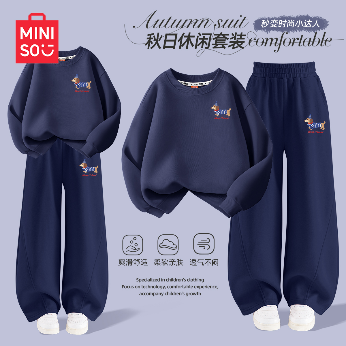 卫衣儿童衣服 潮酷时髦运动女大童秋装 名创优品女童秋套装 2025新款