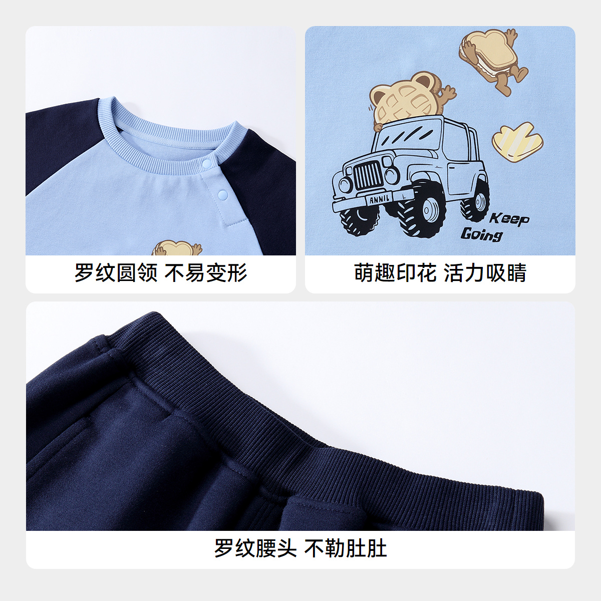 2025秋新款 男童卫衣套装 安奈儿童装 卡通弹力XB531167 商场同款