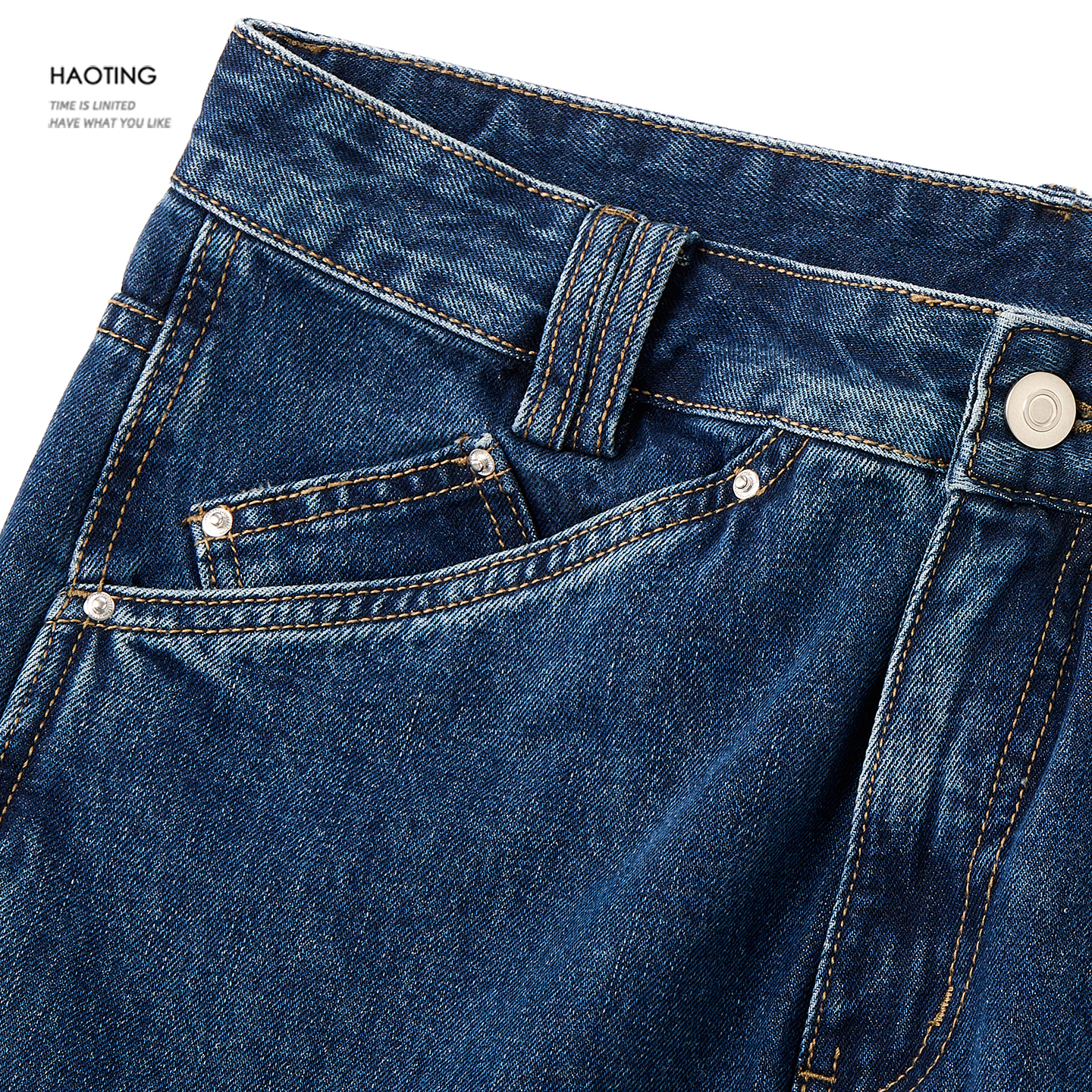 早秋弯刀裤 one 小个子直筒阔腿裤 女冬2025新款 more丹宁蓝牛仔裤