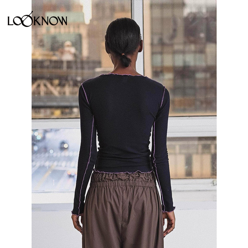 紧身长袖 BASERANGE 新款 LOOKNOW2025年秋季 紫色花边T恤女
