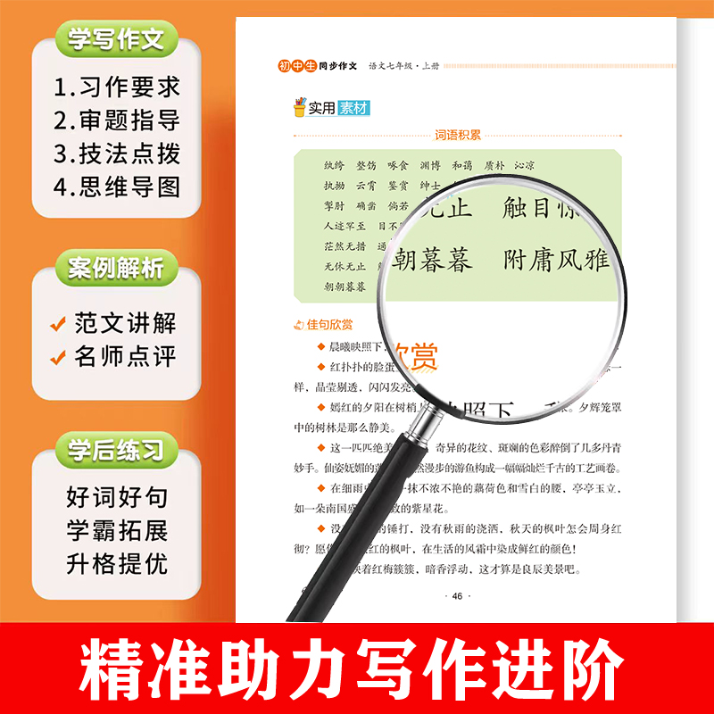 2025七年级上册语文同步作文配套人教版 初一7年级上学期同步练习册初中高分范文精选满分优秀作文书辅导大全中学生写作技巧下册