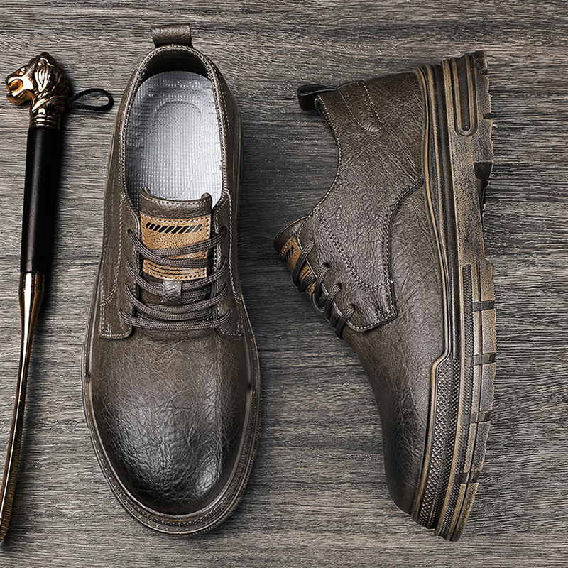 防滑耐磨厚底工作劳保板鞋 男士 春秋复古潮流低帮商务休闲皮鞋 男鞋