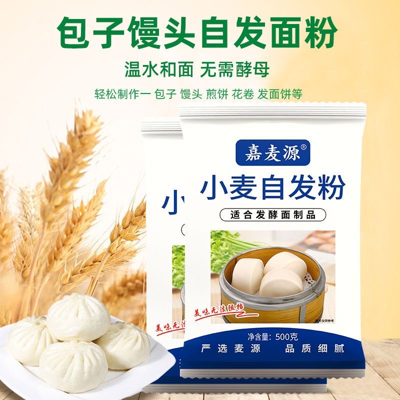 嘉麦源自发小麦粉500g 袋面粉家用小麦粉中筋自发粉包子馒头面粉