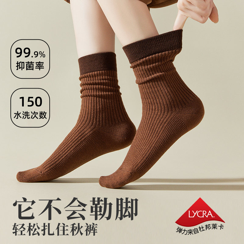 堆堆袜子女春秋款 白色中筒运动袜纯棉 长筒月子袜防臭诸暨配勃肯鞋