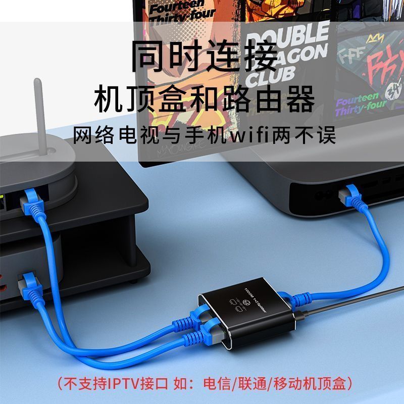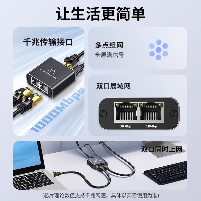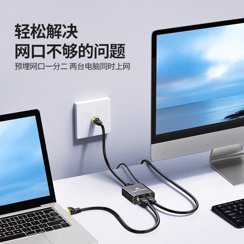 网线一分二转换器千兆网线一分三同时上网网络分配器一分四电脑显示视频画面拼接器无缝切换不黑屏2025新款
