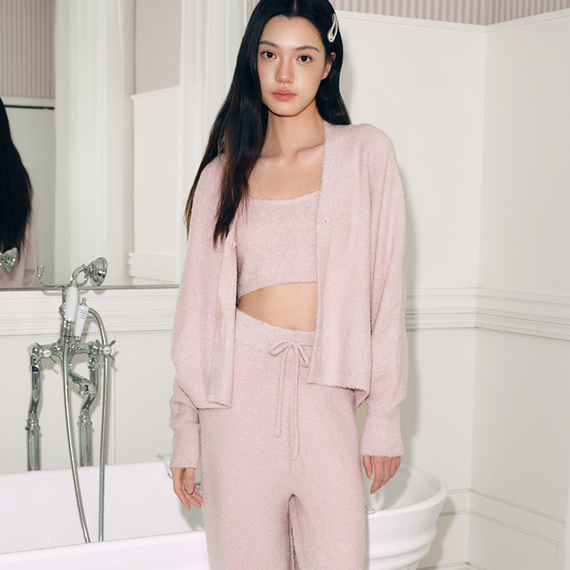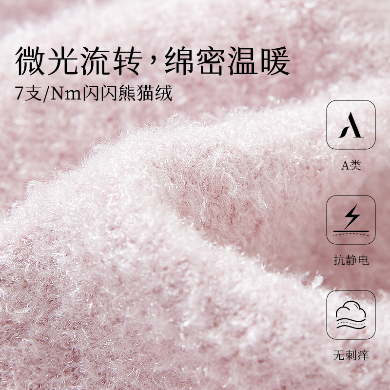 从轻闪闪家居服三件套装 舒适睡衣秋冬保暖熊猫绒可外穿 绒感女开衫