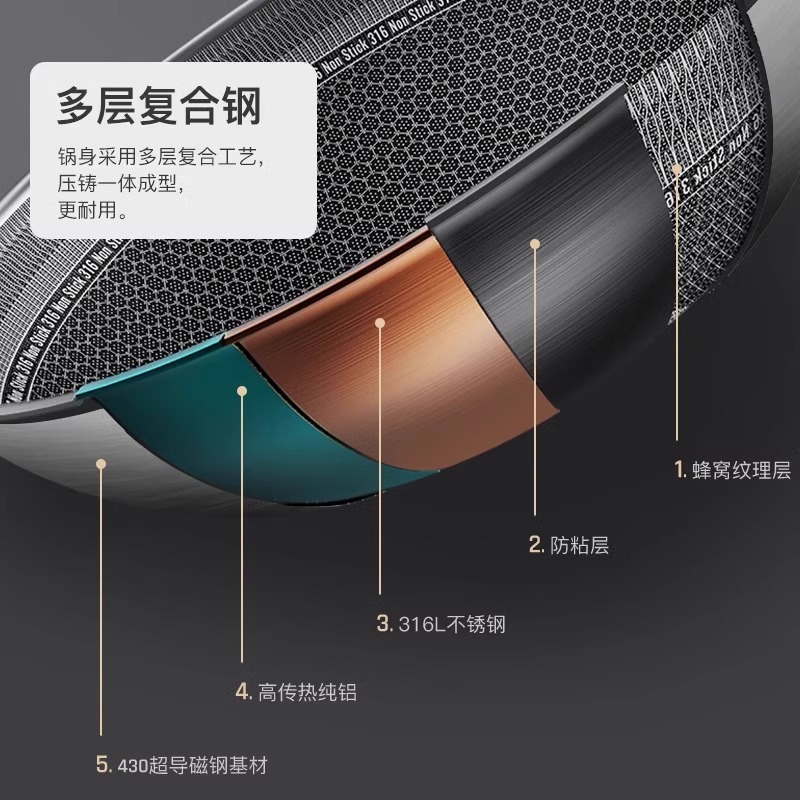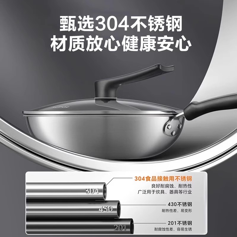 苏泊尔不粘锅家用炒锅304不锈钢蜂窝不粘炒菜锅电磁炉燃气灶通用