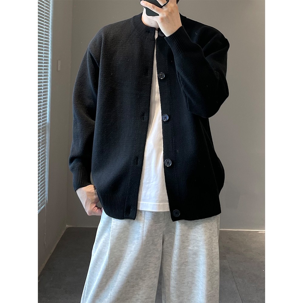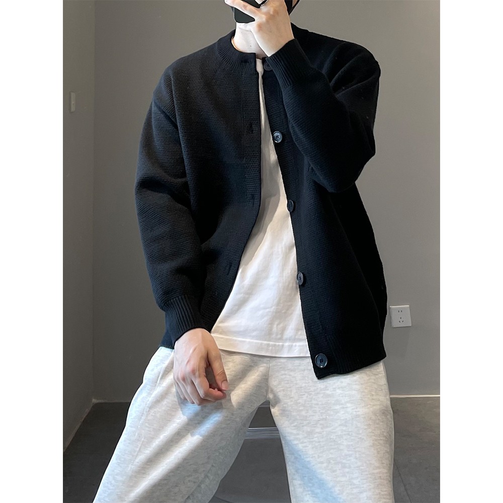 针织开衫 灰色圆领短款 长袖 秋季 外套慵懒风高级感痞帅夹克 毛衣男士