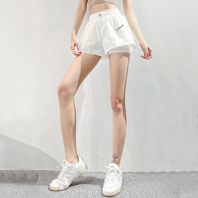 休闲宽松跑步骑行健身瑜伽裤 白色运动短裤 女秋二合一内衬2025新款