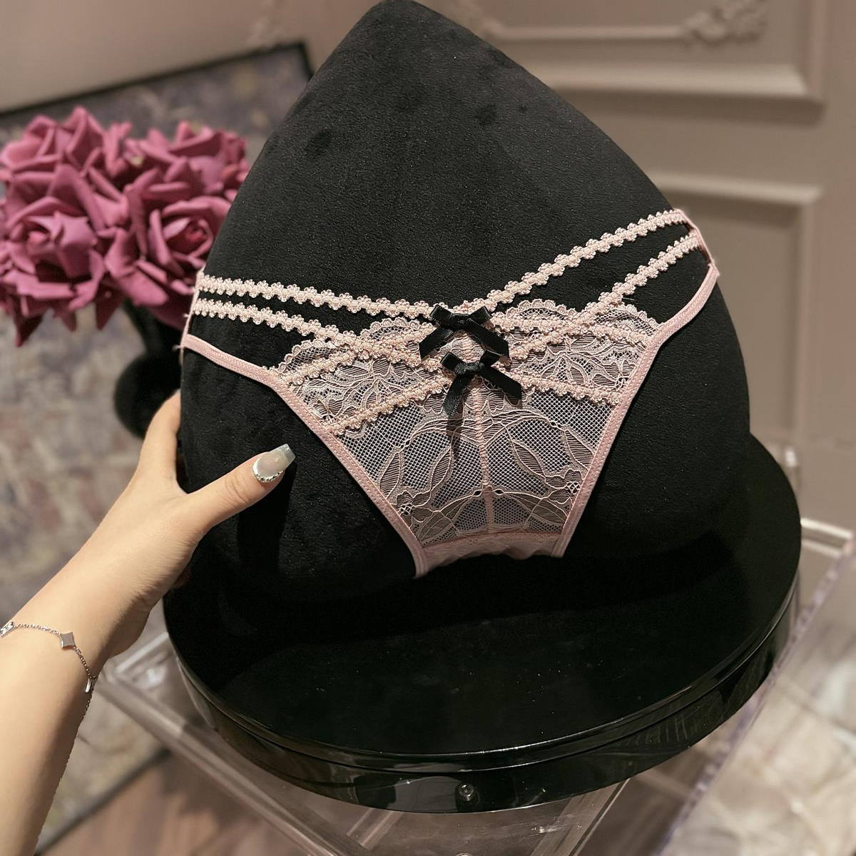 低腰纯欲细带镂空交叉内裤 少女 女蝴蝶结性感网纱透视纯棉裆三角裤