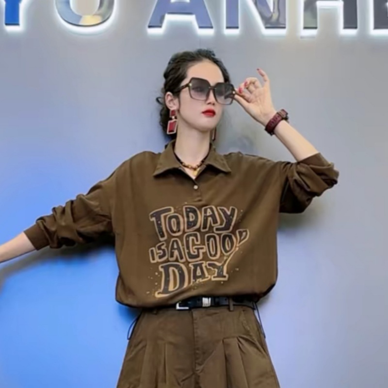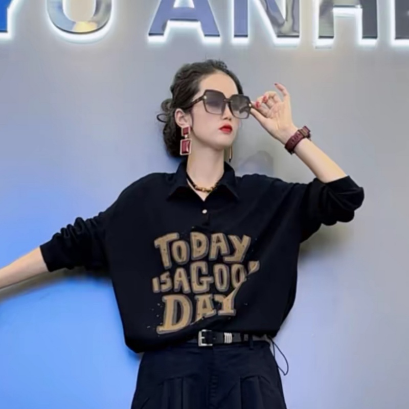 卫衣女减龄时尚 2025秋季 印花长袖 POLO领时尚 遮肉百搭洋气上衣 新款