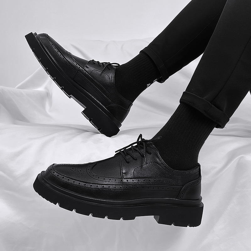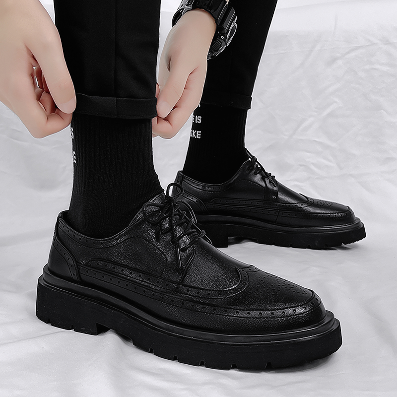 男2025新款 休闲黑色低帮潮鞋 秋季 男士 伴郎英伦商务西装 布洛克皮鞋