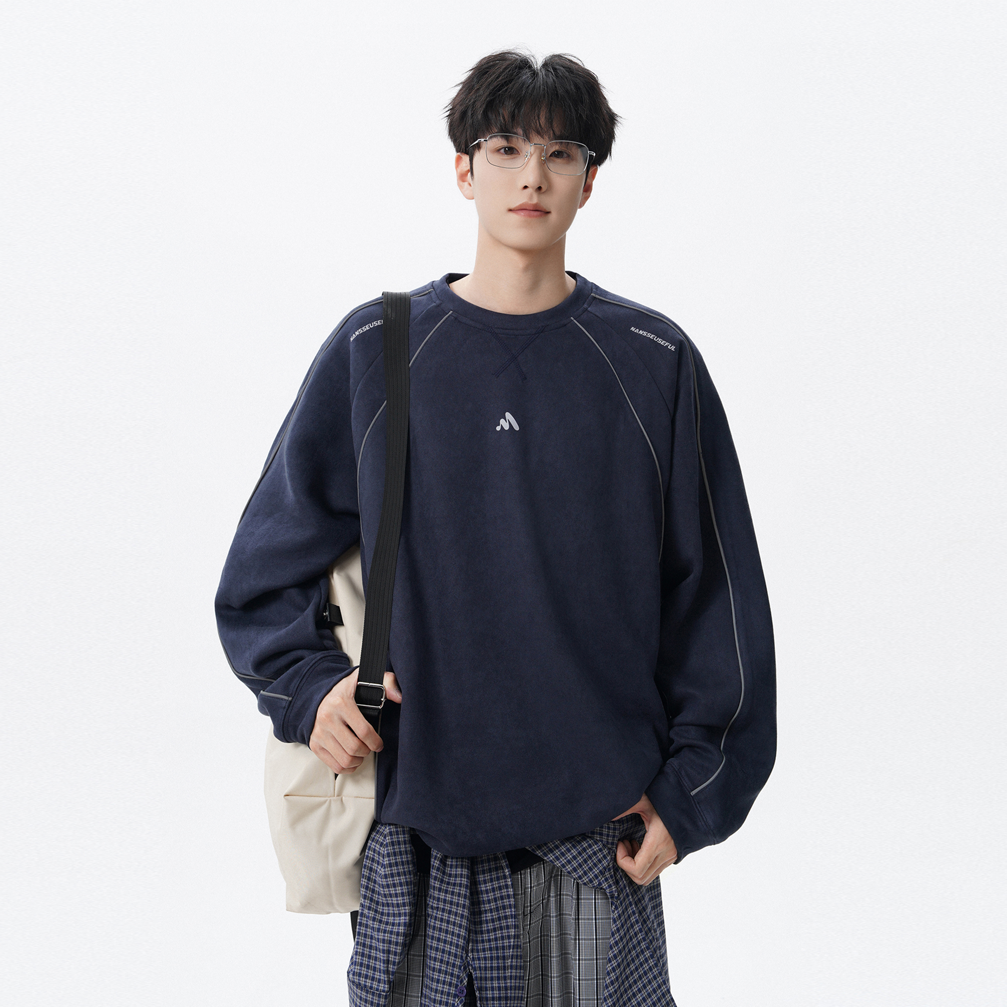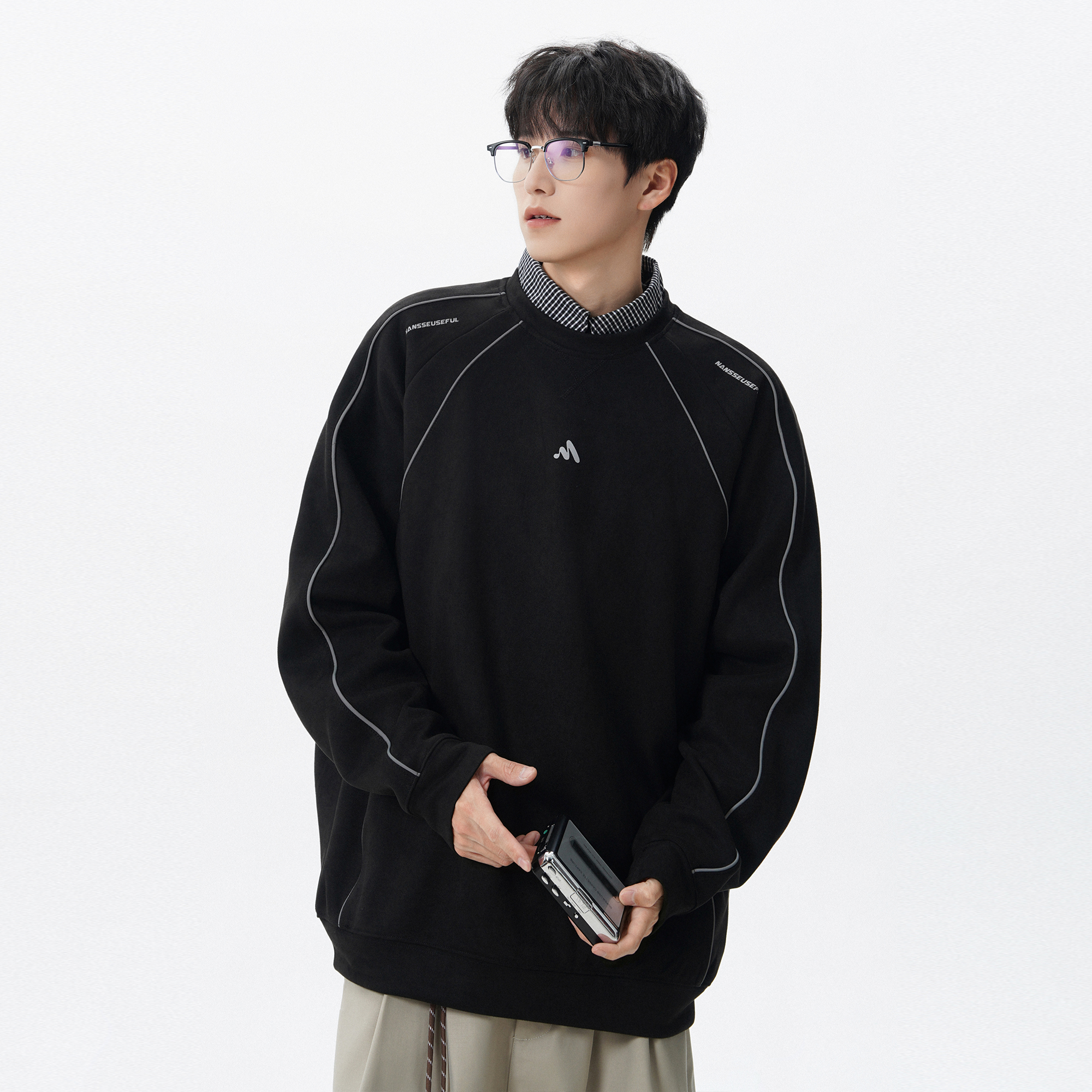 潮牌宽松休闲外套上衣服 新款 美式 重磅麂皮圆领卫衣男女2025春秋季