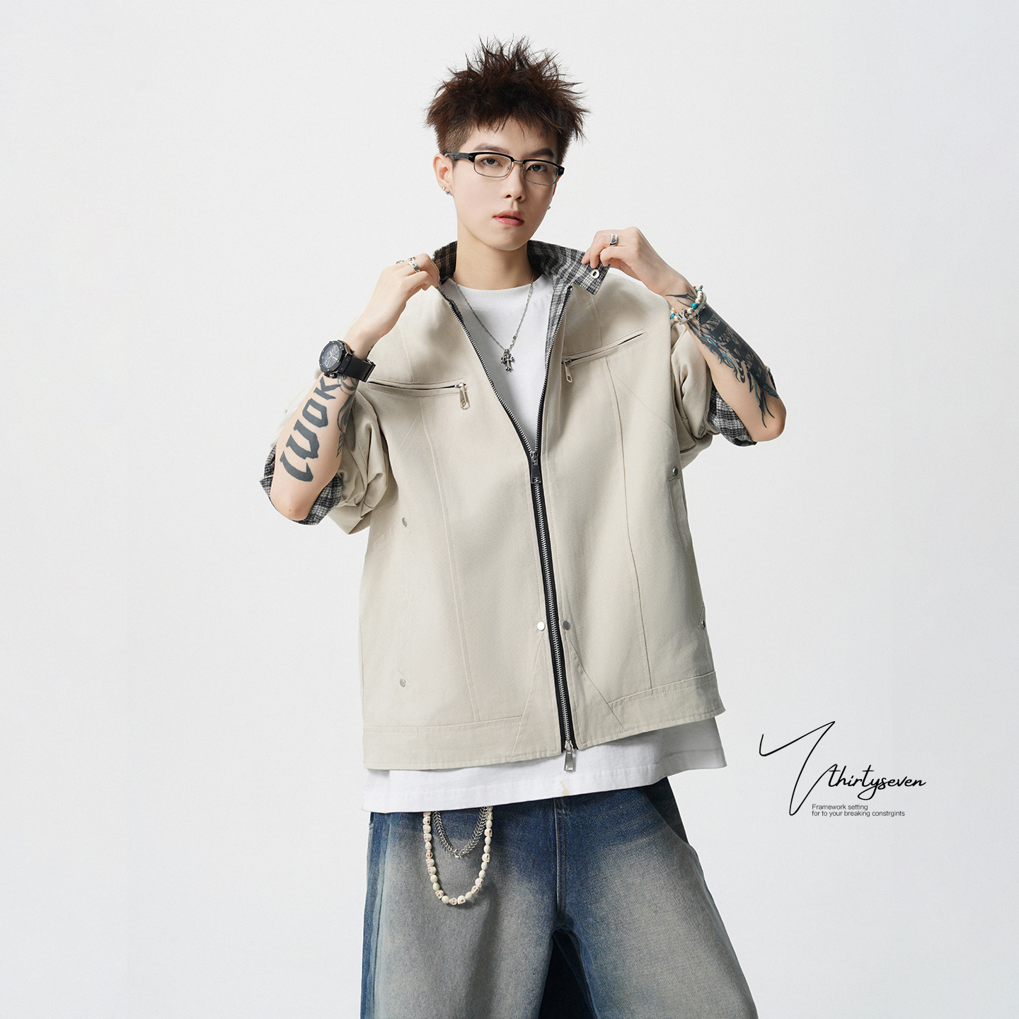 夹克上衣 潮牌美式 李一桐同款 INXXAPYD复古做旧牛仔外套男女同款