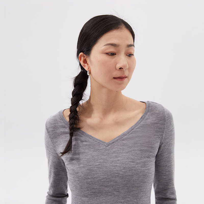 保暖低领打底衫 T恤v领秋冬修身 半开领白色上衣 女长袖 蕉下亨利衫