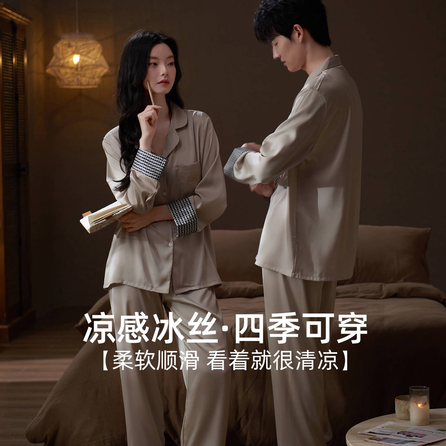 可外穿秋冬款 松山棉店小暖羊罗纹家居服套装 睡衣女带胸垫情侣长袖