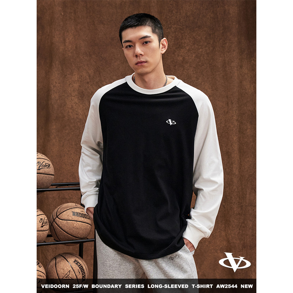篮球宽松休闲插肩袖 美式 圆领T恤棉青少年V 男秋季 维动界限运动长袖