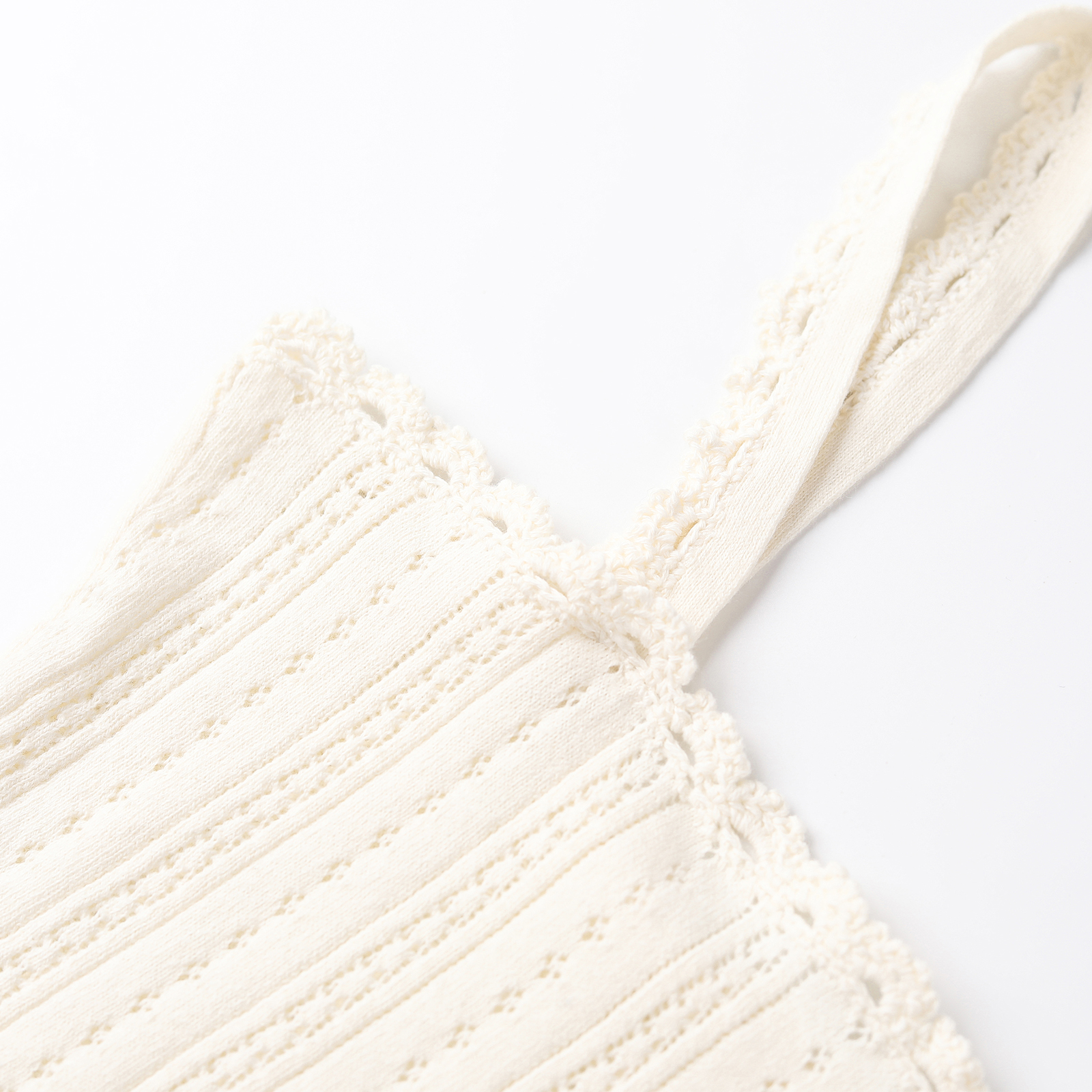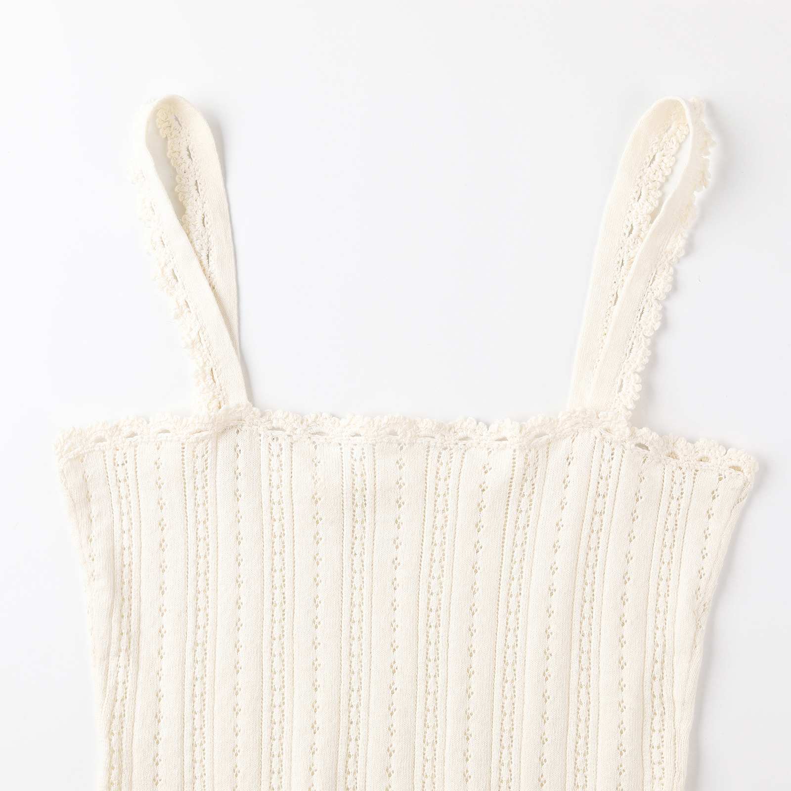 wana 奶白简约休闲上衣 try纯棉手工花边针织吊带背心2025早秋新品