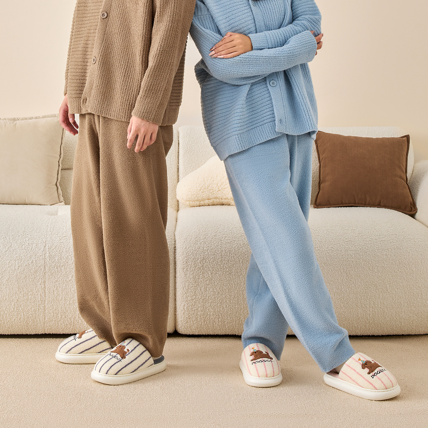 家居情侣可爱毛绒保暖防滑棉拖男士 洁丽雅棉拖鞋 冬季 2025新款 女款