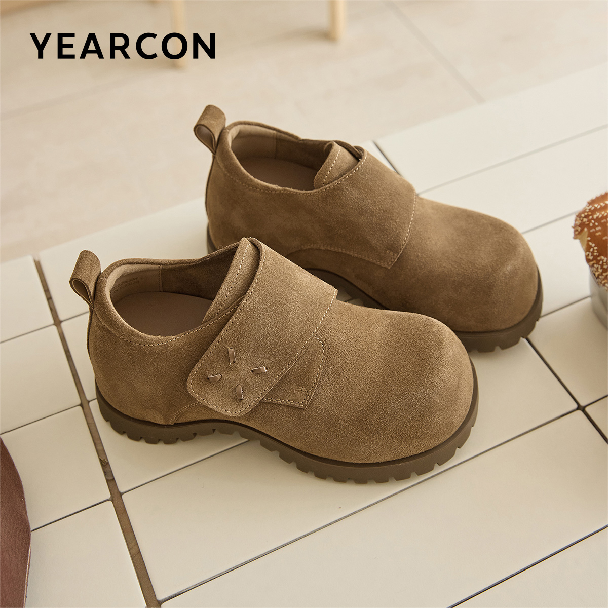 魔术贴大头鞋 意尔康女鞋 复古休闲全包勃肯鞋 内增高单鞋 2025秋季