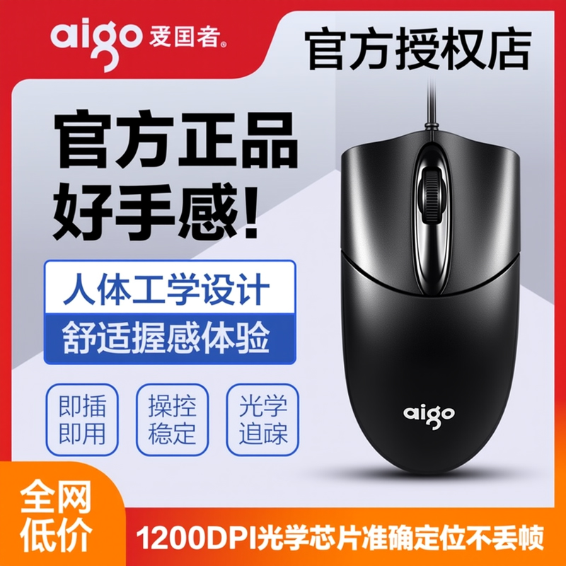 爱国者有线鼠标台式 笔记本通用适用于ACER联想HP华为小米DELL电脑
