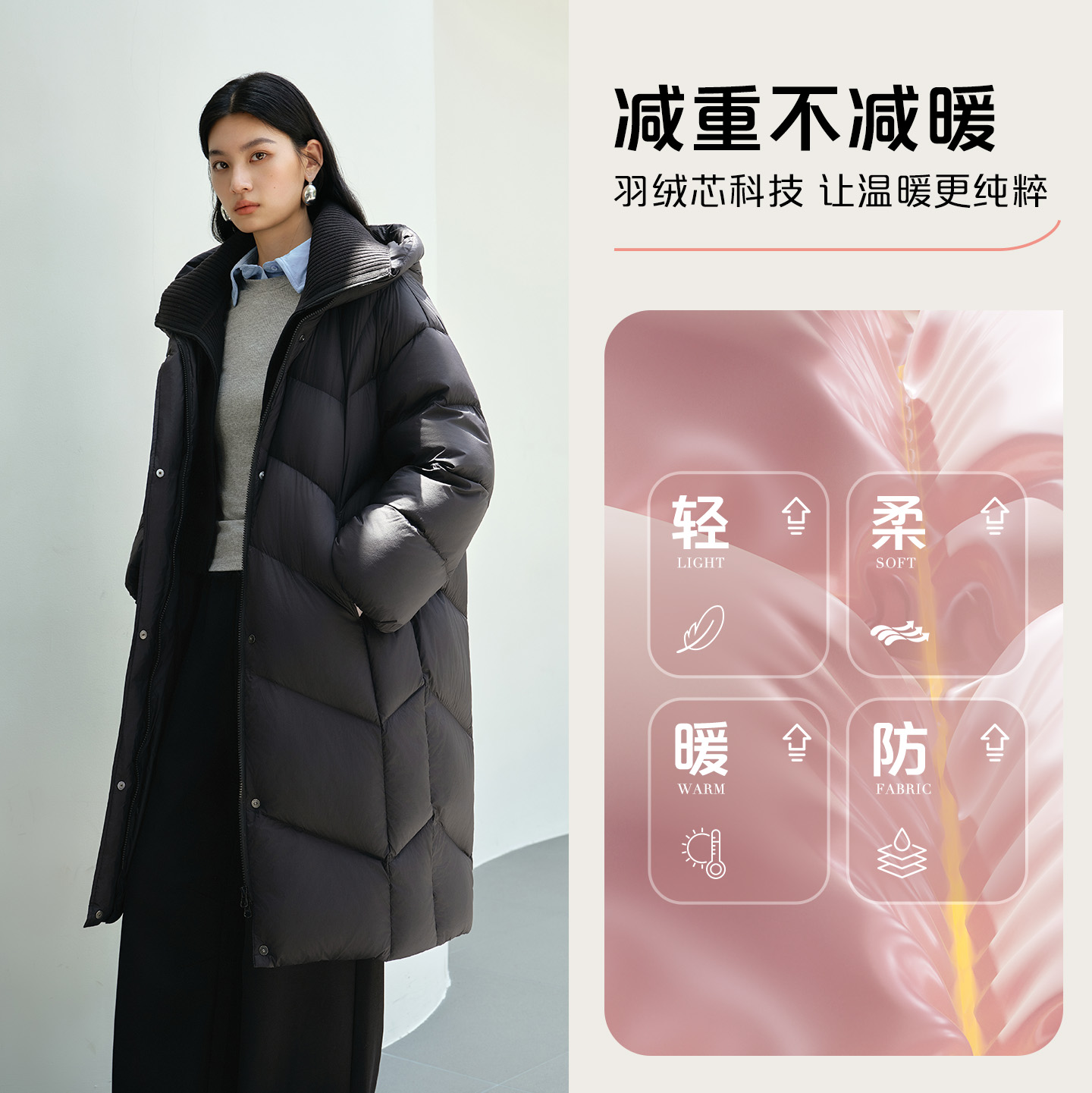 艾莱依2025新款 宽松显瘦下摆抽绳防风保暖短外套 连帽羽绒服落肩袖