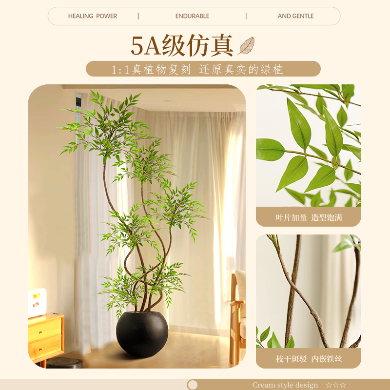 南天竹仿真绿植高级轻奢感电视柜大型落地仿生假树大摆件盆栽