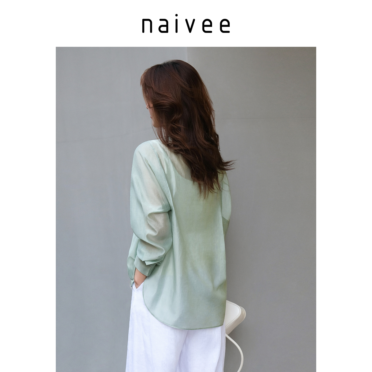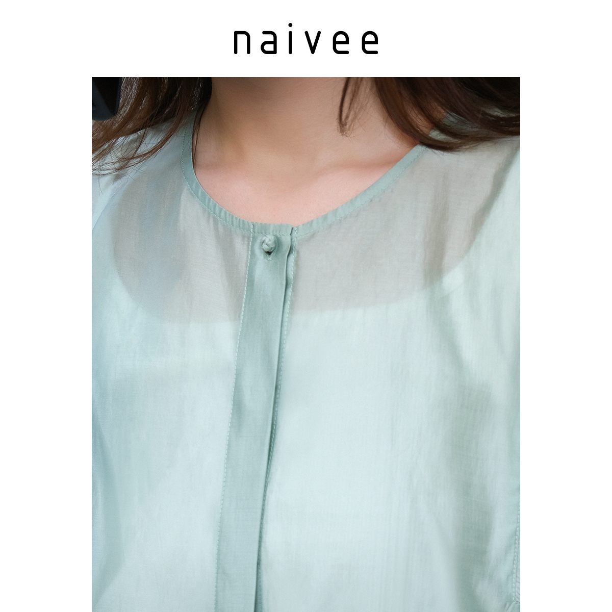上衣宽松简约 圆领长袖 naivee纳薇莱赛尔轻盈微透女士衬衫 外套中式