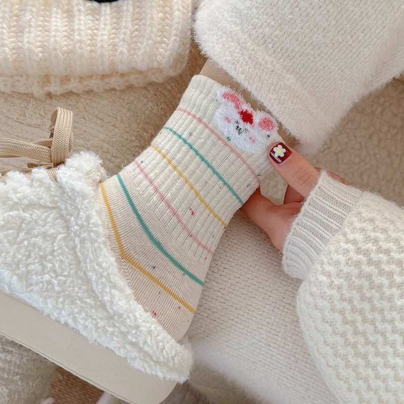 中筒ins潮韩国可爱卡通长袜波点时尚 2025新款 点子纱毛绒女春秋季