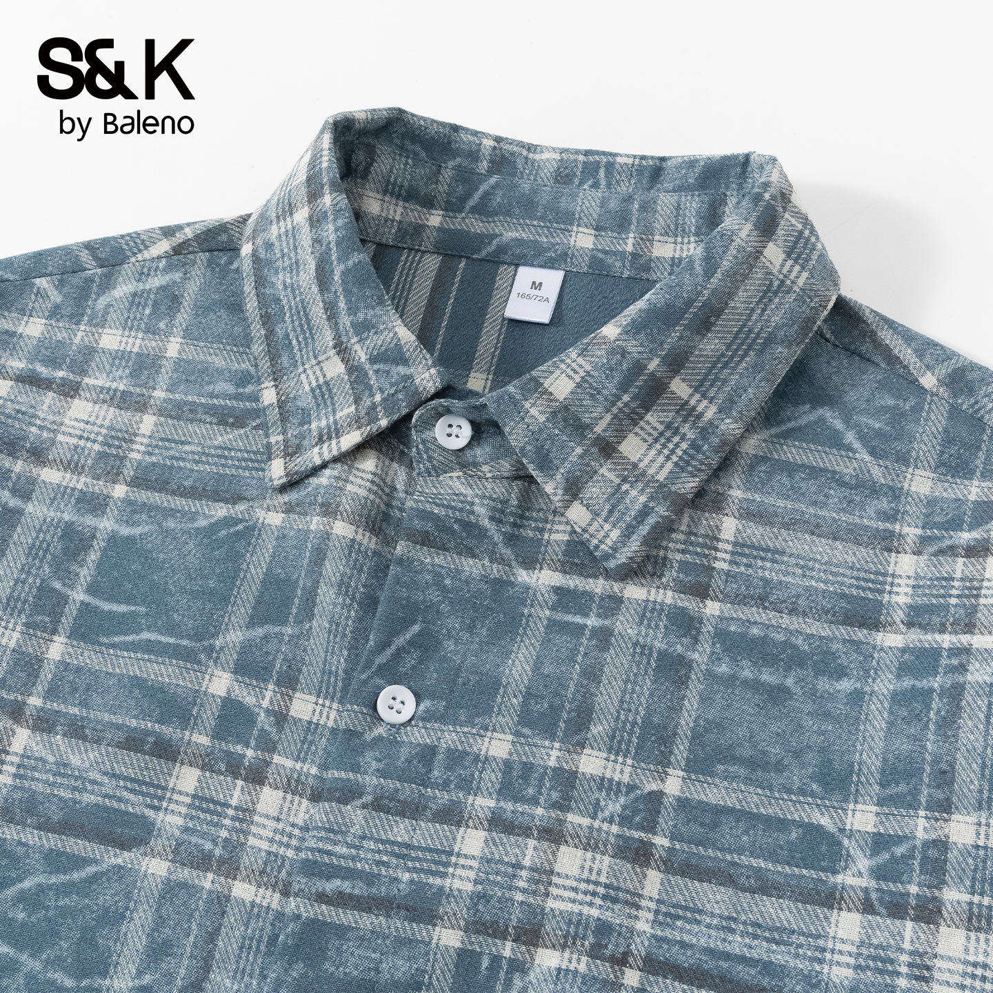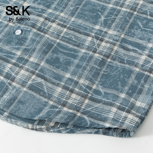 宽松百搭休闲上衣外套男士 男2025秋款 衬衫 班尼路SK潮牌格子长袖