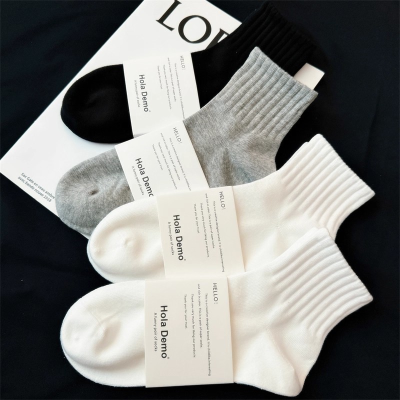 全棉短袜子女春秋季 中短筒袜无骨 纯棉吸汗防臭夏透气运动风秋冬款
