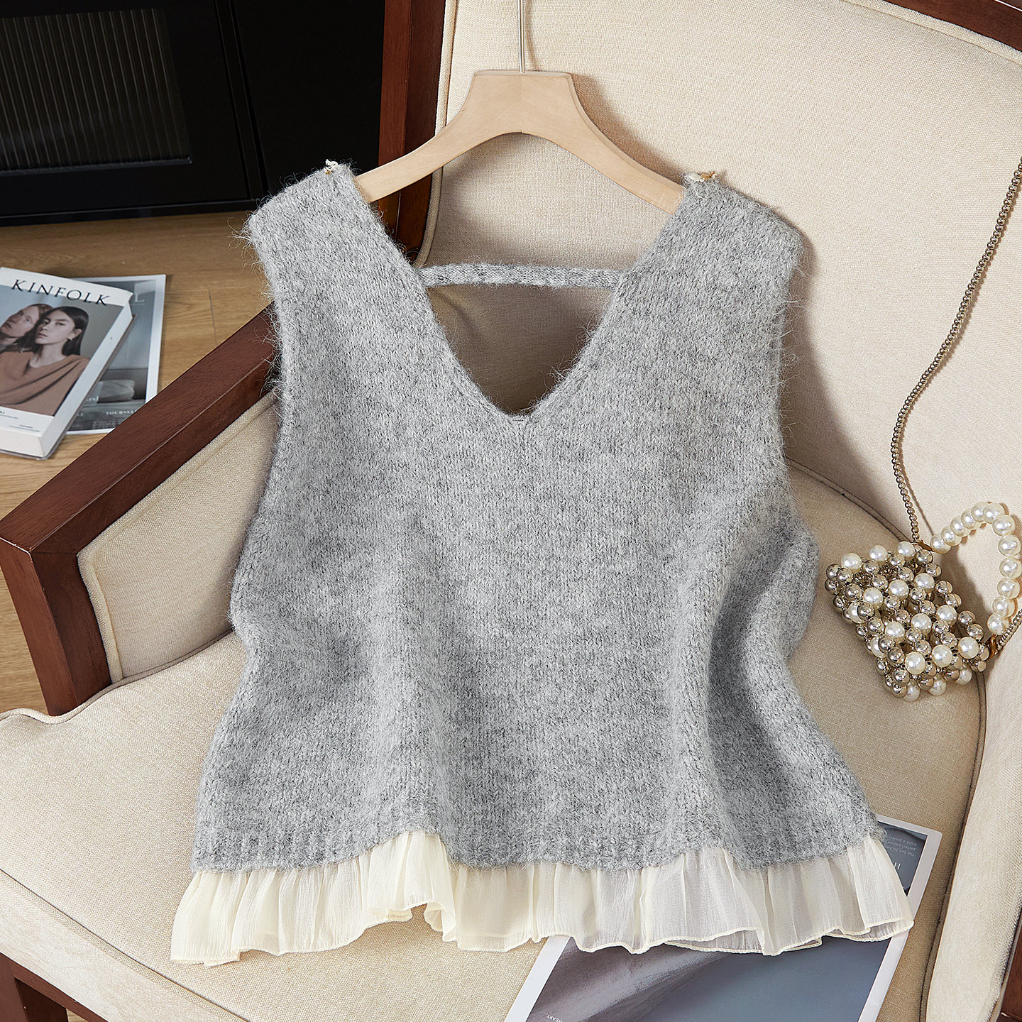 镂空花边纽扣针织衫 秋天叠穿马甲 吊带背心女内搭上衣外搭独特罩衫